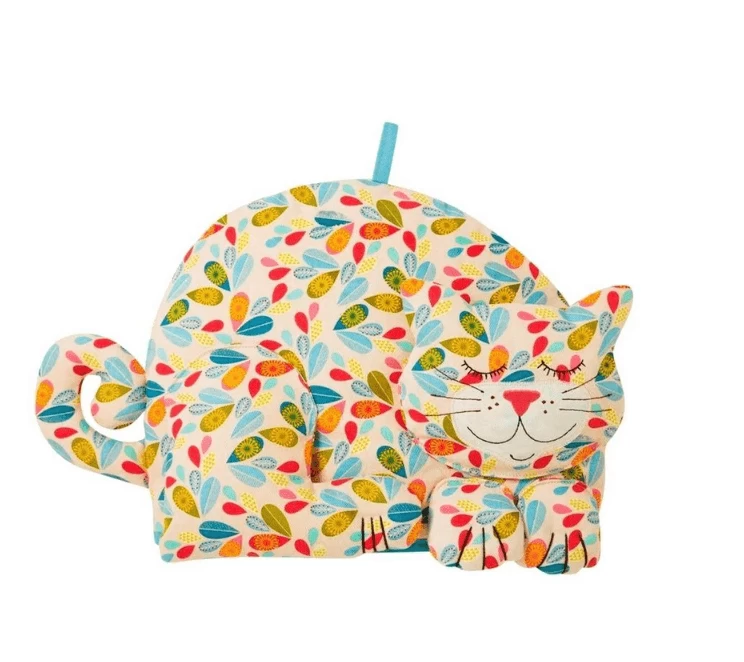 De theemuts van Ulster Weavers is vervaardigd van katoen en voorzien van een polyester vulling voor isolatie. Gebruik de theemuts om uw theepot langer op temperatuur te houden. De theemuts heeft de vorm van een kat met de opdruk van blaadjes. De theemuts is 30 cm lang en 27 cm hoog.